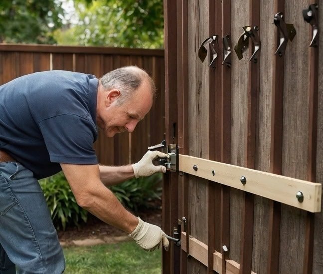 Installation de clôtures en bois, grillage, panneaux rigides.