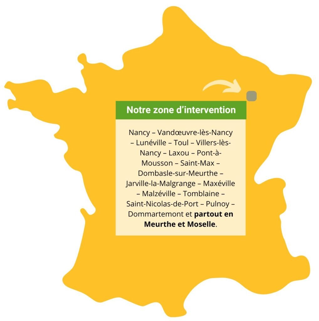 Basés à Nancy, nous intervenons dans toute la Meurthe-et-Moselle pour vos projets d’aménagement et d’entretien de jardins. Que vous soyez à Nancy, Lunéville, Toul, Pont-à-Mousson ou dans les environs, notre équipe se déplace rapidement pour répondre à vos besoins.